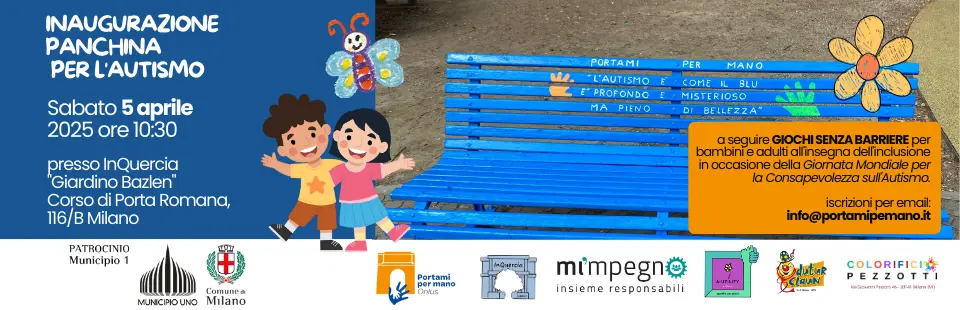 Sabato 5 aprile 2025, alle ore 10.30, si è tenuta l’inaugurazione della "Panchina per l'Autismo" posizionata nell’area adiacente al playground da basket del Giardino Roberto Bazlen e Luciano Foà in corso di Porta Romana 116/b, alla presenza dei rappresentanti del Municipio 1 di Milano. L’iniziativa ha fatto parte delle celebrazioni per la Giornata Mondiale della Consapevolezza sull’Autismo e ha visto la partecipazione di numerose realtà del territorio.